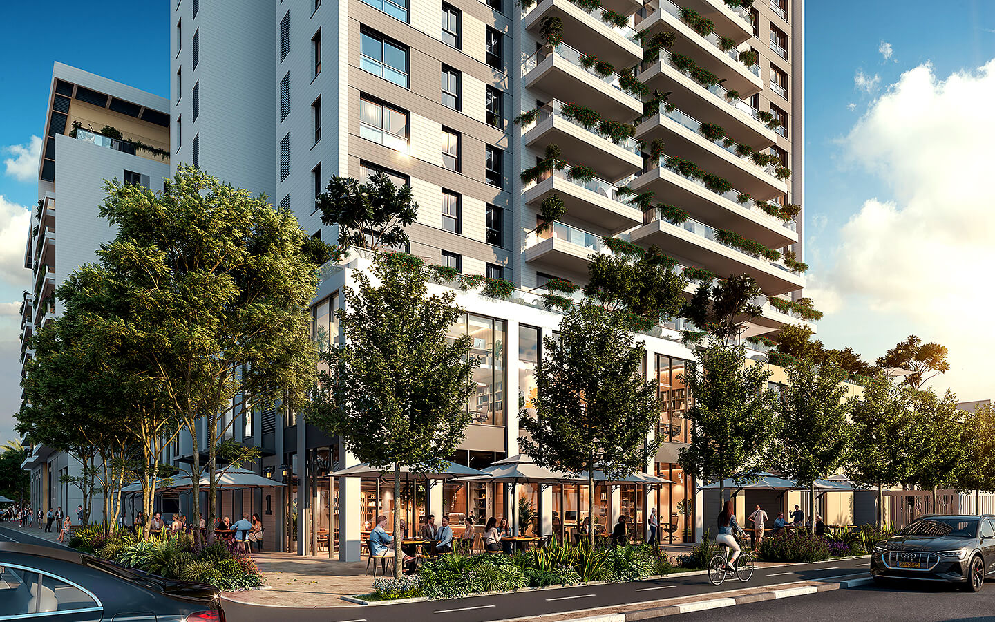 כאן מחכה לכם חוויית מגורים שלמה: בתי קפה מתחת לבית, שטחי ציבור ירוקים ומרחב אורבני מעוצב שמעניק לכם את הכל – מבלי להזיז את הרכב.
